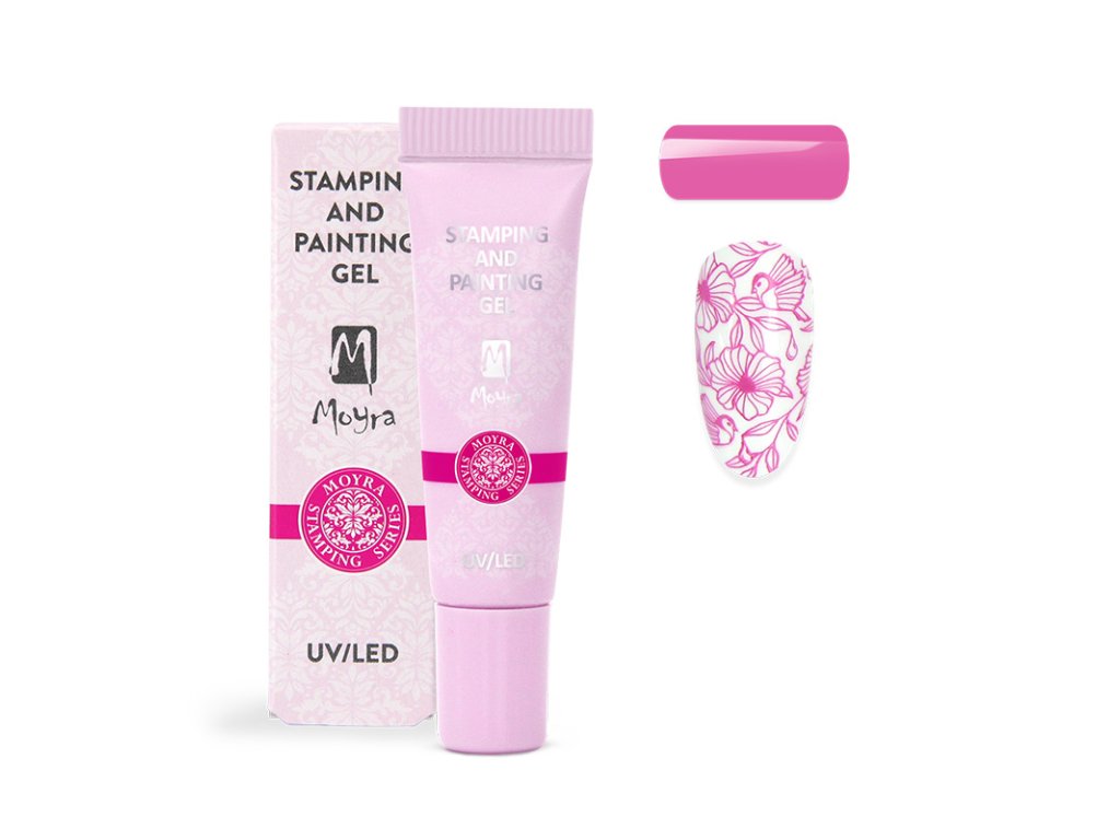 Stamping and painting gel – spojení stamping a paintingu gelu v jedinečný, bezvýpotkový UV gel v praktickém balení. Vhodný pro malbu a stínování v tenké vrstvě díky své intenzivní pigmentaci. Vynikající volba k razítkování či k vytvoření Baby boomeru.