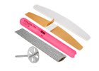 Doporučujeme Vám si před použitím pilníků a houbiček, pořádně ztupit ostré hrany /nejlépe starým pilníkem /. Vyvarujete se tak možnému nepříjemnému poranění kůže v okolí nehtů.