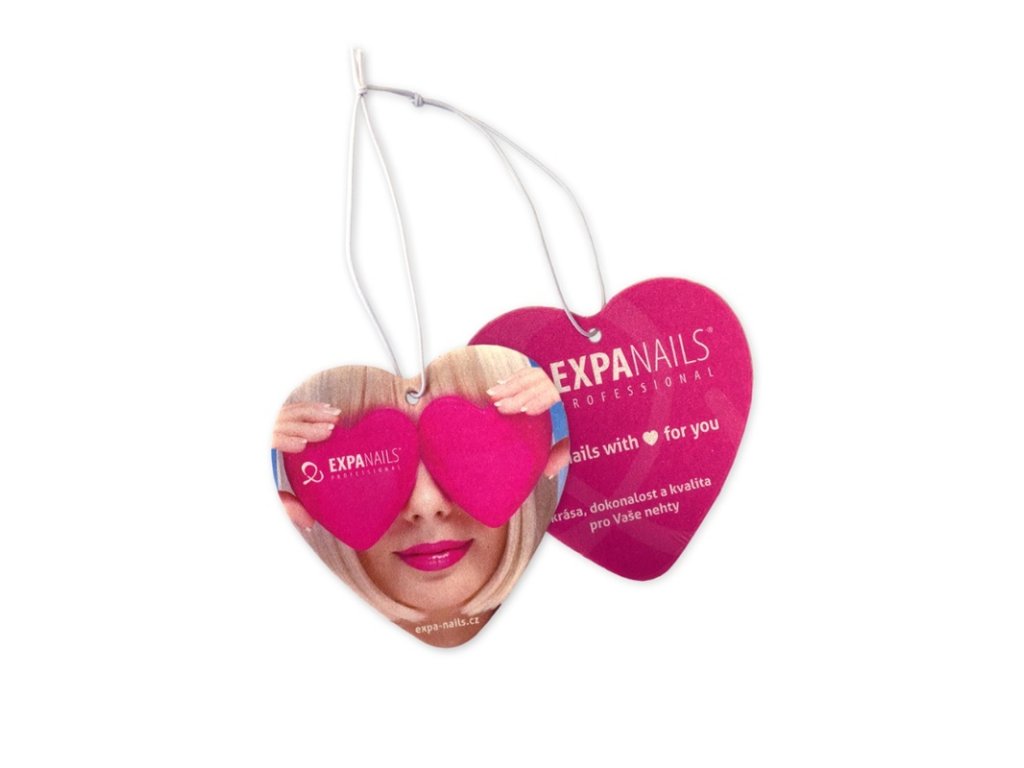 Osvěžovač - voňka do auta ve tvaru srdíčka s příjemnou vůní Aloe a designem naší firmy Expa nails.