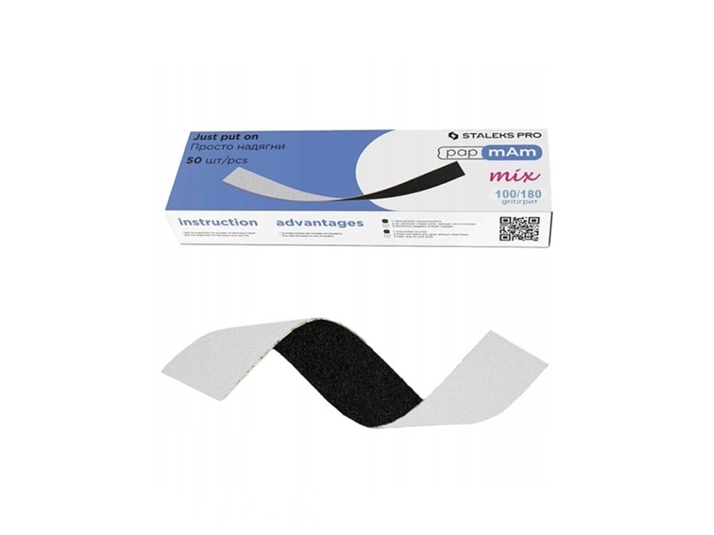 Staleks jednorázové navlékací pilníky rovné - oboustranné s hrubostí 100/180 nebo 180/240, které se jednoduše vsouvají a vysouvají na pilníkové základy rovné( v naší nabídce pod kódy: ST001, ST002 nebo ST005). Pilníky mají dvě různé zrnitosti 100/180. Výhodou je čistý nástroj bez zbytků lepidla po práci.