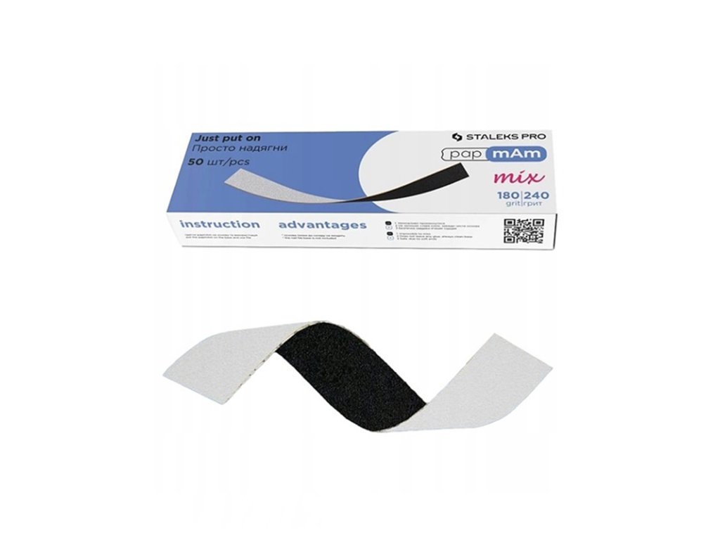 Staleks jednorázové navlékací pilníky rovné - oboustranné s hrubostí 100/180 nebo 180/240, které se jednoduše vsouvají a vysouvají na pilníkové základy rovné( v naší nabídce pod kódy: ST001, ST002 nebo ST005). Pilníky mají dvě různé zrnitosti 100/180. Výhodou je čistý nástroj bez zbytků lepidla po práci.