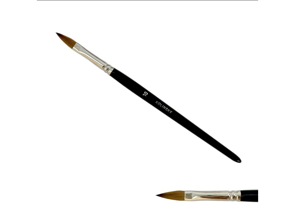 Štětec na nehty Kolinsky č.10 - plochý, oválný, vlas z kolonoka (Mustela siberica), bezešvá stříbrná zděř, leské černé lakované držátko.