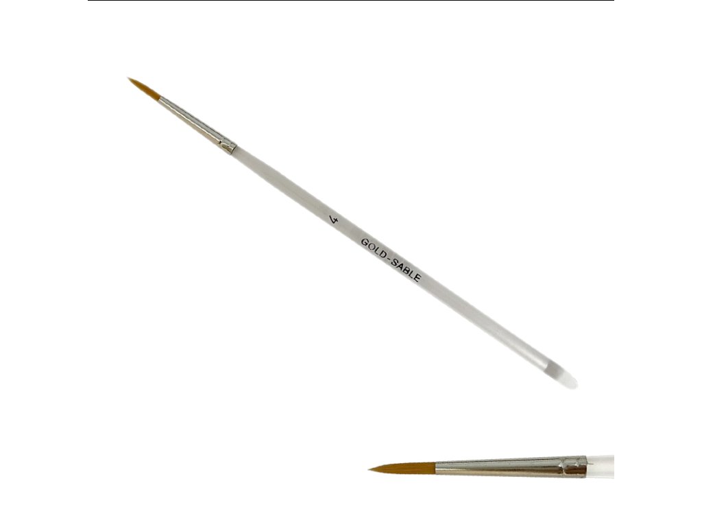 Štětec na nehty Gold Sable č.4 - kulatý, špičatý, načervenalý syntetický vlas - Gold Sable, bezešvá stříbrná zděř, akrylátové držátko.