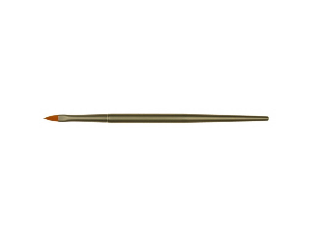 Štětec na nehty Gold Sable č.5 - plochý, tvar kočičí jazýček, načervenalý syntetický vlas - Gold Sable, matná kovová stříbrná zděř a držátko, bez ochranné krytky.