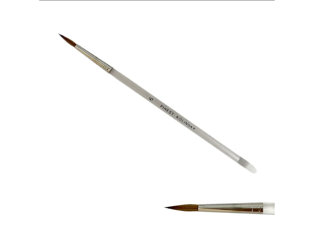 Štětec na nehty Kolinsky č.6 - kulatý, špičatý, vlas z kolonoka (Mustela siberica), bezešvá stříbrná zděř, akrylátové držátko.