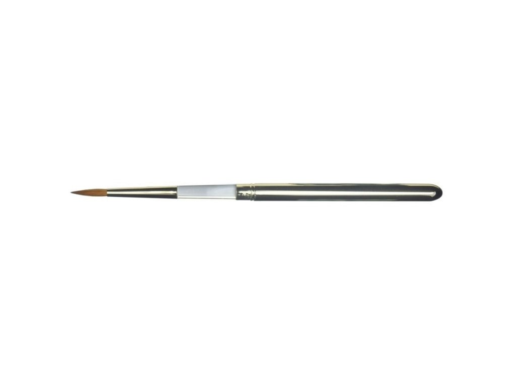 ŠTĚTEC č.6 - kulatý, přírodní, skládací, vhodný na gel i akryl stříbrný snímatelný kryt sloužící i jako nástavec průhledného akrylového držátka, vlas Kolinsky-Rotmarder.