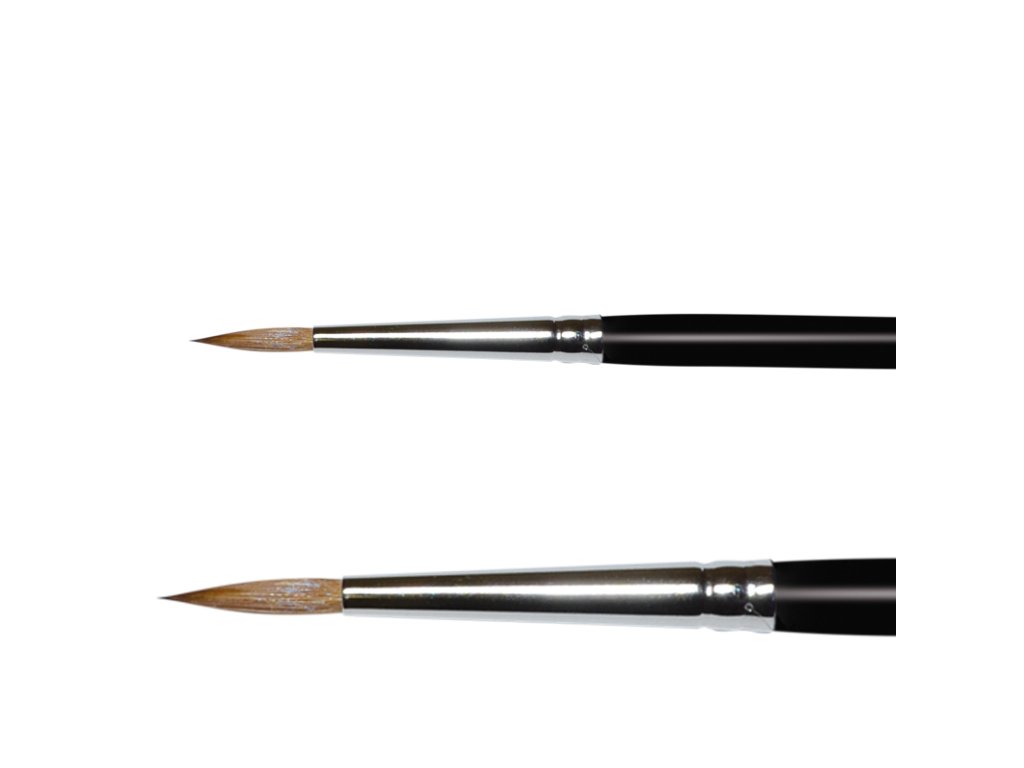 ŠTĚTEC č.6 - kulatý, špičatý, vhodný na gel i akryl, bezešvá stříbrná zděř, černě lakované držátko, vlas Kolinsky-Rotmarder.