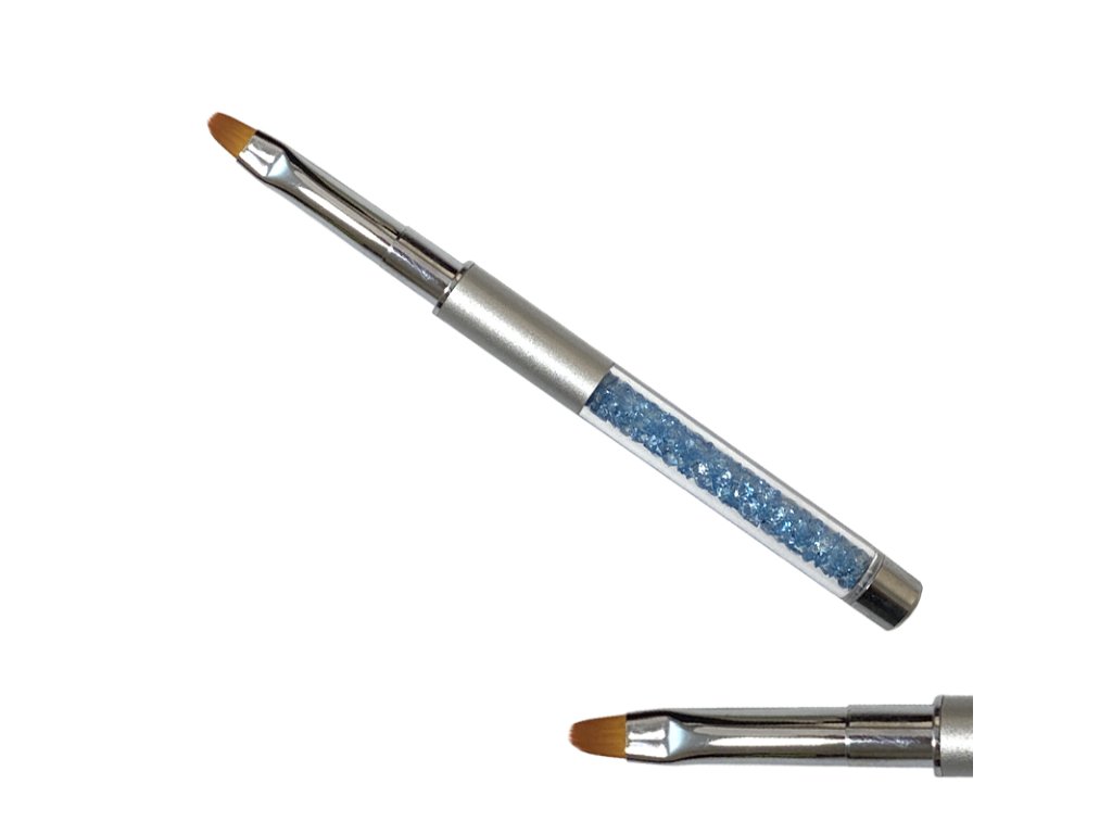 Luxusní štětec č. 6 plochý, zakulacený, umělý vlas, který je vhodný na gel. Délka vlasu: 8mm Célková délka štětce: 13,4cm Rukojeť je ozdobena TYRKYSOVÝMI kamínky