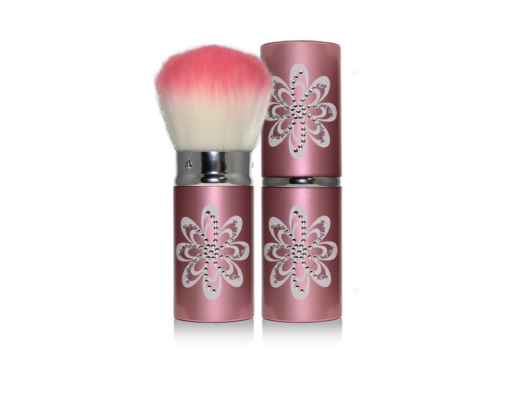 Štetec na prach s extra jemnými chloupky, obal hliníkový zdobený kamínky, skládací, uzavíratelný (snadno přenosný).