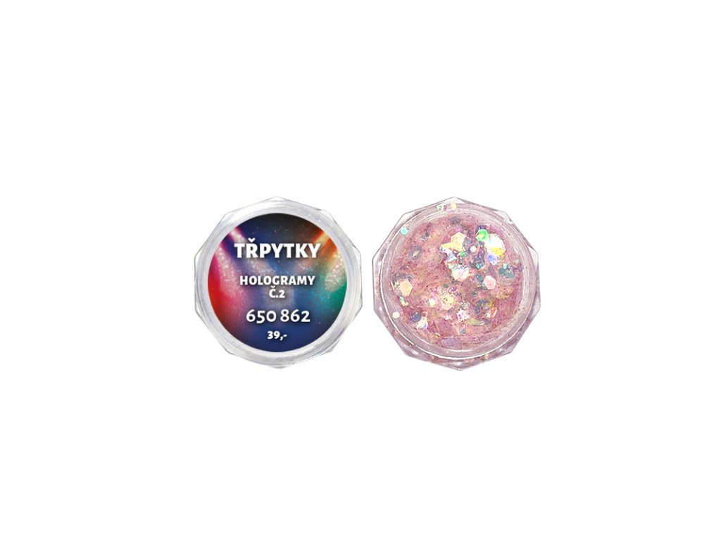 Mix růžových světlých hologramů a třpytek, které jsou vhodné na vkládání do gelu, akrylu nebo Poly akrygelu.