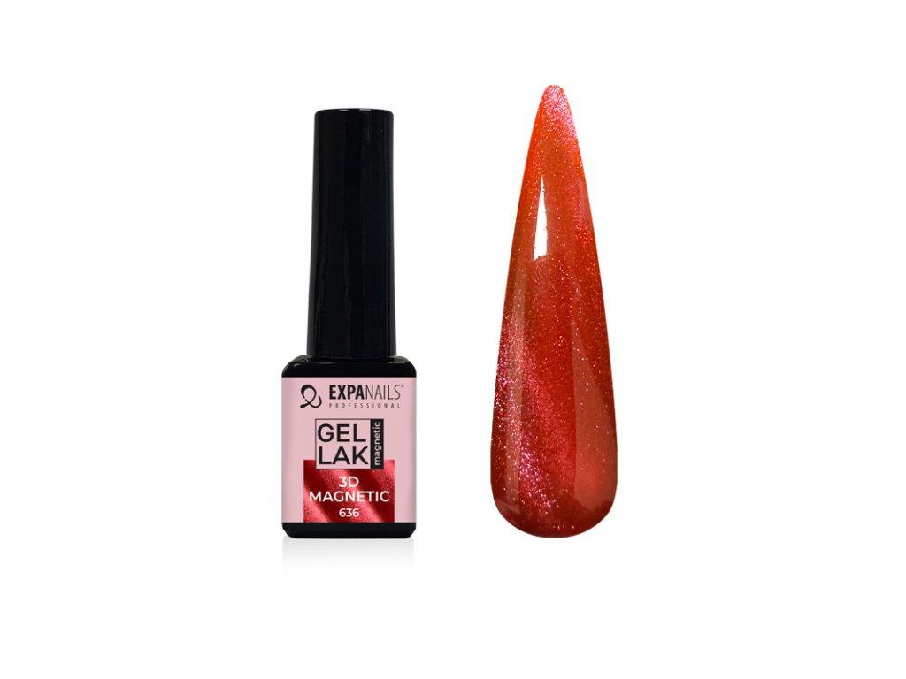 UV/LED Gel laky barevné magnetické jsou speciální gel laky, které umožňují pomocí magnetu vytvořit 3D-9D efekt pohyblivého světelného pruhu nebo vzoru. Magnetické gely obsahují jemné kovové částice, které reagují na magnetické pole. Některé magnetické gely potřebují tmavý podklad. Magnetický gel lak naneste, a ještě než jej vytvrdíte, opatrně ze strany přikládejte magnet (kód 460027). Pokud se efekt nepovede, přetřete znovu nehet gelem a zkuste znovu. Poté vytvrďte v UV/LED lampě (kód 331020). Velmi krásné efekty jsou v kombinaci se třpytkami nebo kamínky.