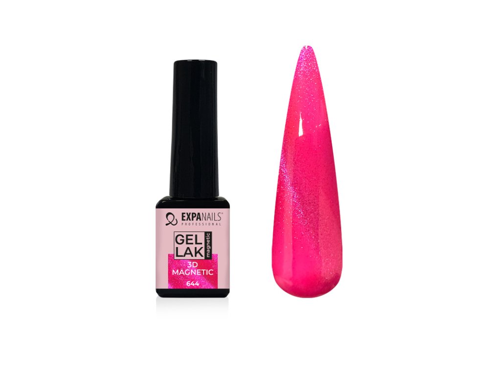 UV/LED Gel laky barevné magnetické jsou speciální gel laky, které umožňují pomocí magnetu vytvořit 3D-9D efekt pohyblivého světelného pruhu nebo vzoru. Magnetické gely obsahují jemné kovové částice, které reagují na magnetické pole. Některé magnetické gely potřebují tmavý podklad. Magnetický gel lak naneste, a ještě než jej vytvrdíte, opatrně ze strany přikládejte magnet (kód 460027). Pokud se efekt nepovede, přetřete znovu nehet gelem a zkuste znovu. Poté vytvrďte v UV/LED lampě (kód 331020). Velmi krásné efekty jsou v kombinaci se třpytkami nebo kamínky.