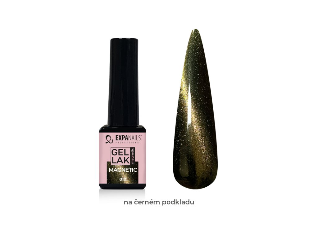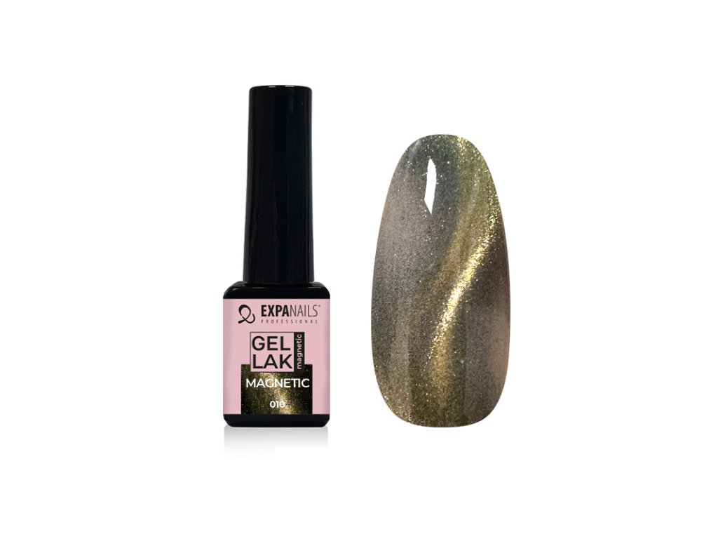 UV/LED Gel laky barevné magnetické jsou speciální gel laky, které umožňují pomocí magnetu vytvořit 3D-9D efekt pohyblivého světelného pruhu nebo vzoru. Magnetické gely obsahují jemné kovové částice, které reagují na magnetické pole. Některé magnetické gely potřebují tmavý podklad. Magnetický gel lak naneste, a ještě než jej vytvrdíte, opatrně ze strany přikládejte magnet (kód 460027). Pokud se efekt nepovede, přetřete znovu nehet gelem a zkuste znovu. Poté vytvrďte v UV/LED lampě (kód 331020). Velmi krásné efekty jsou v kombinaci se třpytkami nebo kamínky.