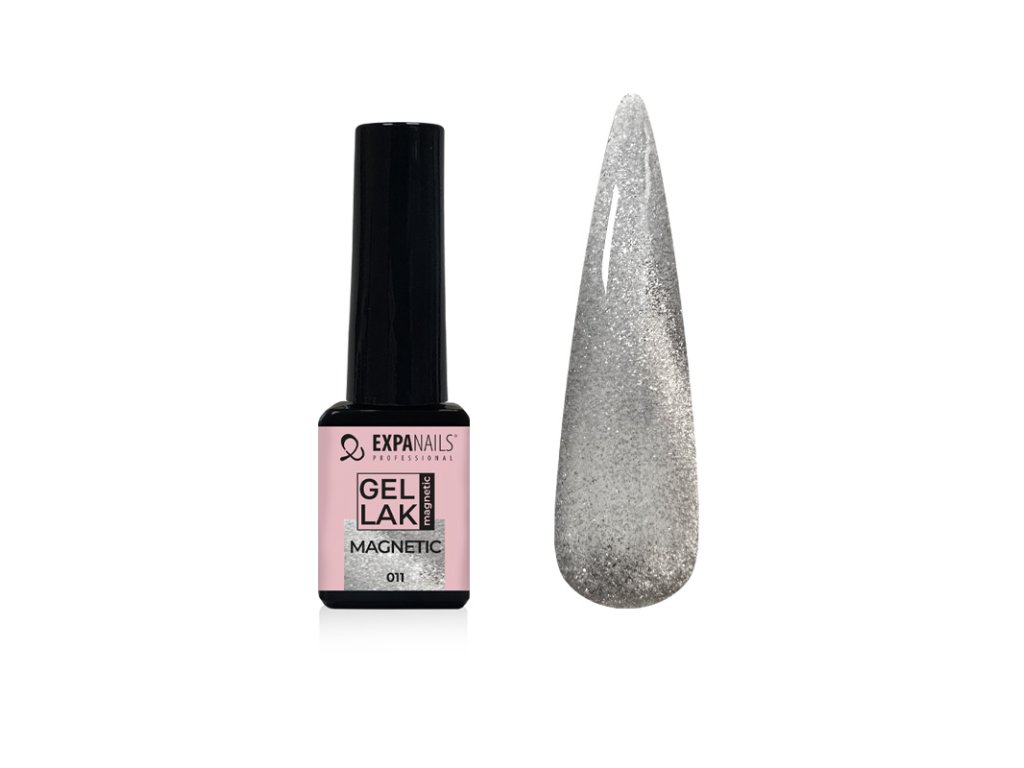 UV/LED Gel laky barevné magnetické jsou speciální gel laky, které umožňují pomocí magnetu vytvořit 3D-9D efekt pohyblivého světelného pruhu nebo vzoru. Magnetické gely obsahují jemné kovové částice, které reagují na magnetické pole. Některé magnetické gely potřebují tmavý podklad. Magnetický gel lak naneste, a ještě než jej vytvrdíte, opatrně ze strany přikládejte magnet (kód 460027). Pokud se efekt nepovede, přetřete znovu nehet gelem a zkuste znovu. Poté vytvrďte v UV/LED lampě (kód 331020). Velmi krásné efekty jsou v kombinaci se třpytkami nebo kamínky.