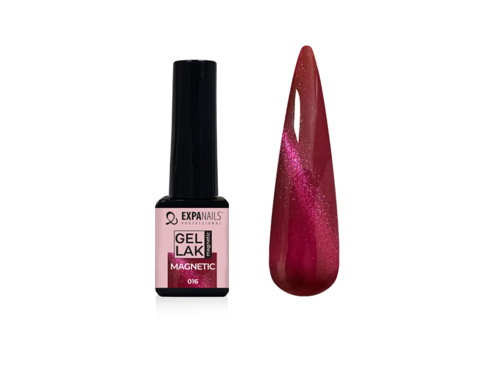 UV/LED Gel laky barevné magnetické jsou speciální gel laky, které umožňují pomocí magnetu vytvořit 3D-9D efekt pohyblivého světelného pruhu nebo vzoru. Magnetické gely obsahují jemné kovové částice, které reagují na magnetické pole. Některé magnetické gely potřebují tmavý podklad. Magnetický gel lak naneste, a ještě než jej vytvrdíte, opatrně ze strany přikládejte magnet (kód 460027). Pokud se efekt nepovede, přetřete znovu nehet gelem a zkuste znovu. Poté vytvrďte v UV/LED lampě (kód 331020). Velmi krásné efekty jsou v kombinaci se třpytkami nebo kamínky.