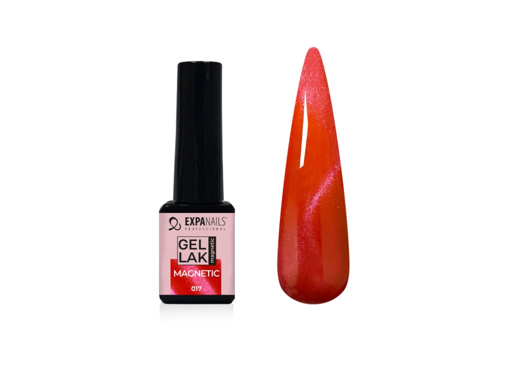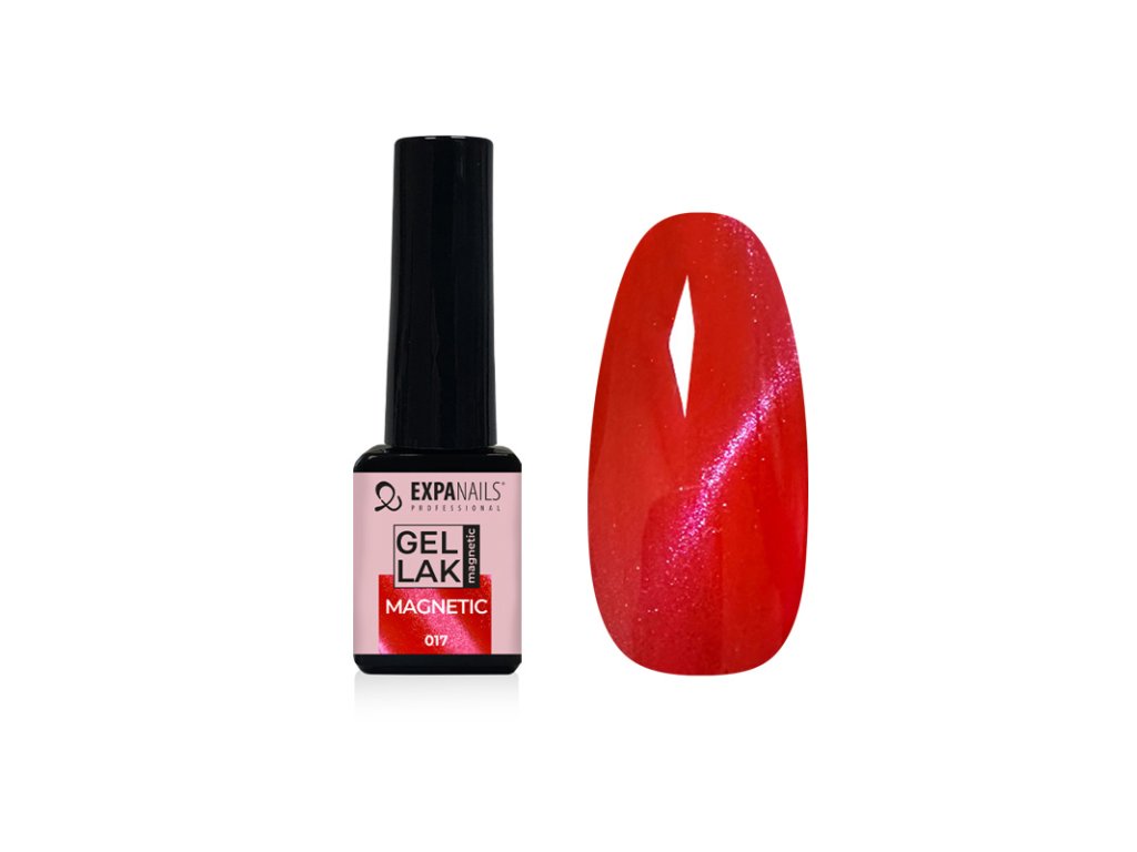 UV/LED Gel laky barevné magnetické jsou speciální gel laky, které umožňují pomocí magnetu vytvořit 3D-9D efekt pohyblivého světelného pruhu nebo vzoru. Magnetické gely obsahují jemné kovové částice, které reagují na magnetické pole. Některé magnetické gely potřebují tmavý podklad. Magnetický gel lak naneste, a ještě než jej vytvrdíte, opatrně ze strany přikládejte magnet (kód 460027). Pokud se efekt nepovede, přetřete znovu nehet gelem a zkuste znovu. Poté vytvrďte v UV/LED lampě (kód 331020). Velmi krásné efekty jsou v kombinaci se třpytkami nebo kamínky.