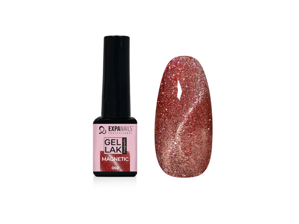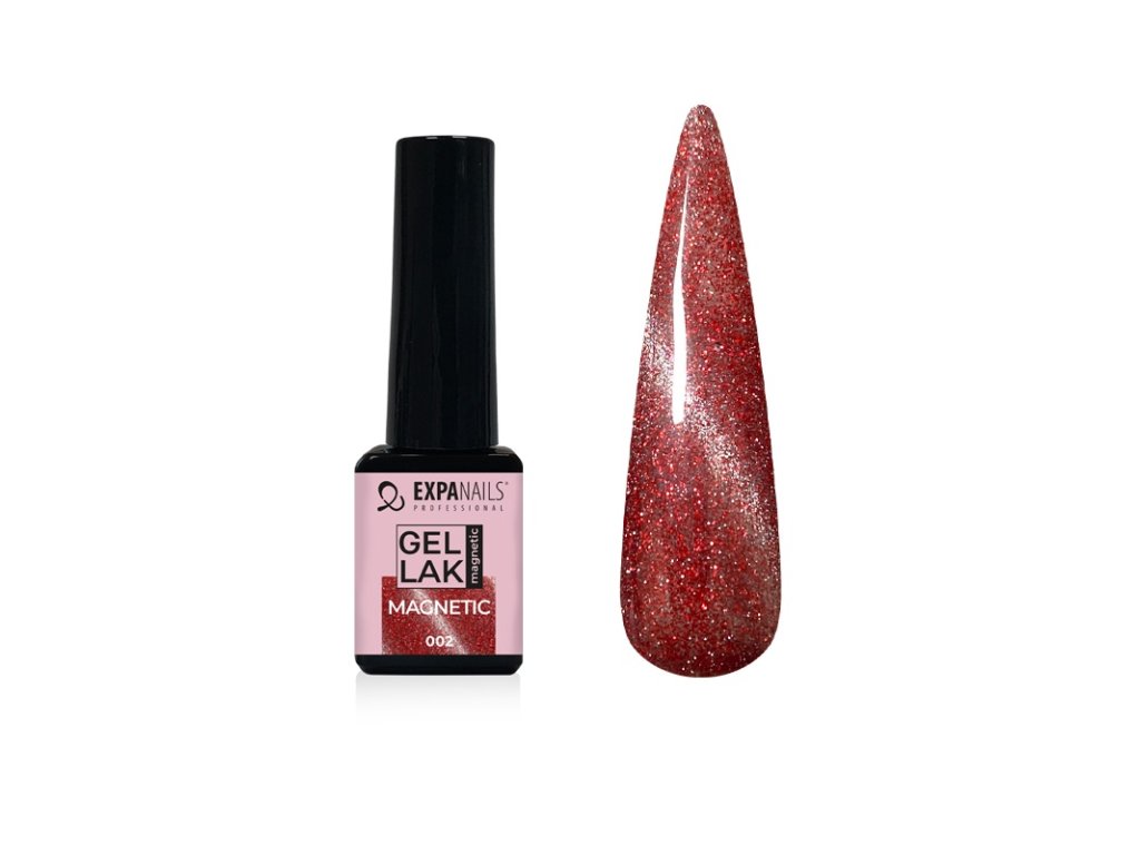 UV/LED Gel laky barevné magnetické jsou speciální gel laky, které umožňují pomocí magnetu vytvořit 3D-9D efekt pohyblivého světelného pruhu nebo vzoru. Magnetické gely obsahují jemné kovové částice, které reagují na magnetické pole. Některé magnetické gely potřebují tmavý podklad. Magnetický gel lak naneste, a ještě než jej vytvrdíte, opatrně ze strany přikládejte magnet (kód 460027). Pokud se efekt nepovede, přetřete znovu nehet gelem a zkuste znovu. Poté vytvrďte v UV/LED lampě (kód 331020). Velmi krásné efekty jsou v kombinaci se třpytkami nebo kamínky.