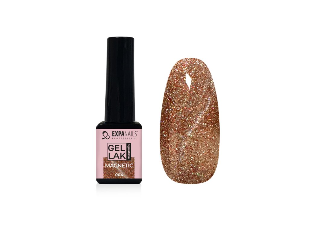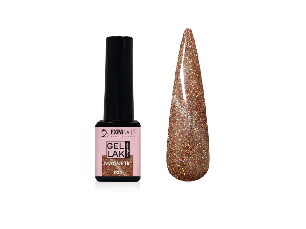 UV/LED Gel laky barevné magnetické jsou speciální gel laky, které umožňují pomocí magnetu vytvořit 3D-9D efekt pohyblivého světelného pruhu nebo vzoru. Magnetické gely obsahují jemné kovové částice, které reagují na magnetické pole. Některé magnetické gely potřebují tmavý podklad. Magnetický gel lak naneste, a ještě než jej vytvrdíte, opatrně ze strany přikládejte magnet (kód 460027). Pokud se efekt nepovede, přetřete znovu nehet gelem a zkuste znovu. Poté vytvrďte v UV/LED lampě (kód 331020). Velmi krásné efekty jsou v kombinaci se třpytkami nebo kamínky.