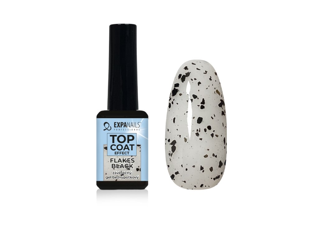 Závěrečný bezvýpotkový lesk, čirý s černými částečkami, který je velmi pružný a efektový lesk. Oživí každou barvu a vytvoří na povrchu barevného gelu nebo zajímavý efekt.