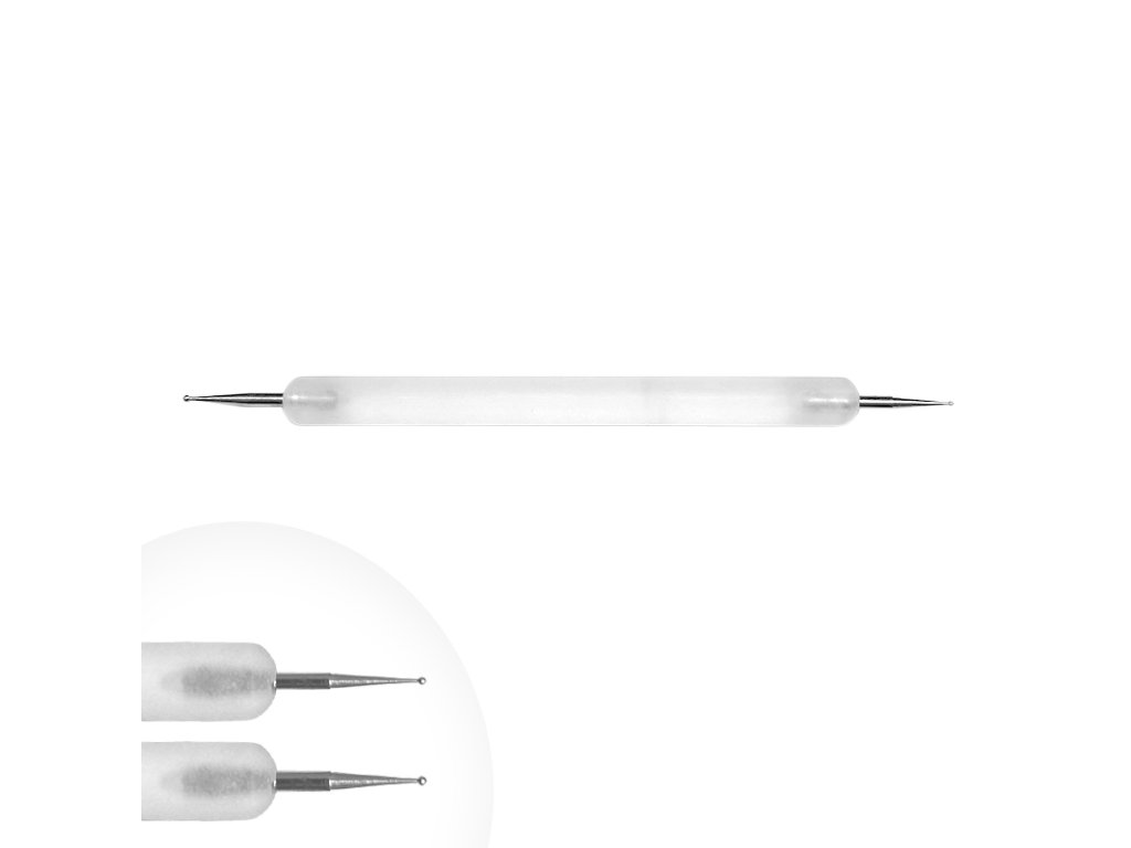 Zdobící hrot oboustranný slouží k aplikaci kamínků nebo i pro Nail Art. Na každé straně má zdobící kuličku rozměry 0,5mm a 1mm